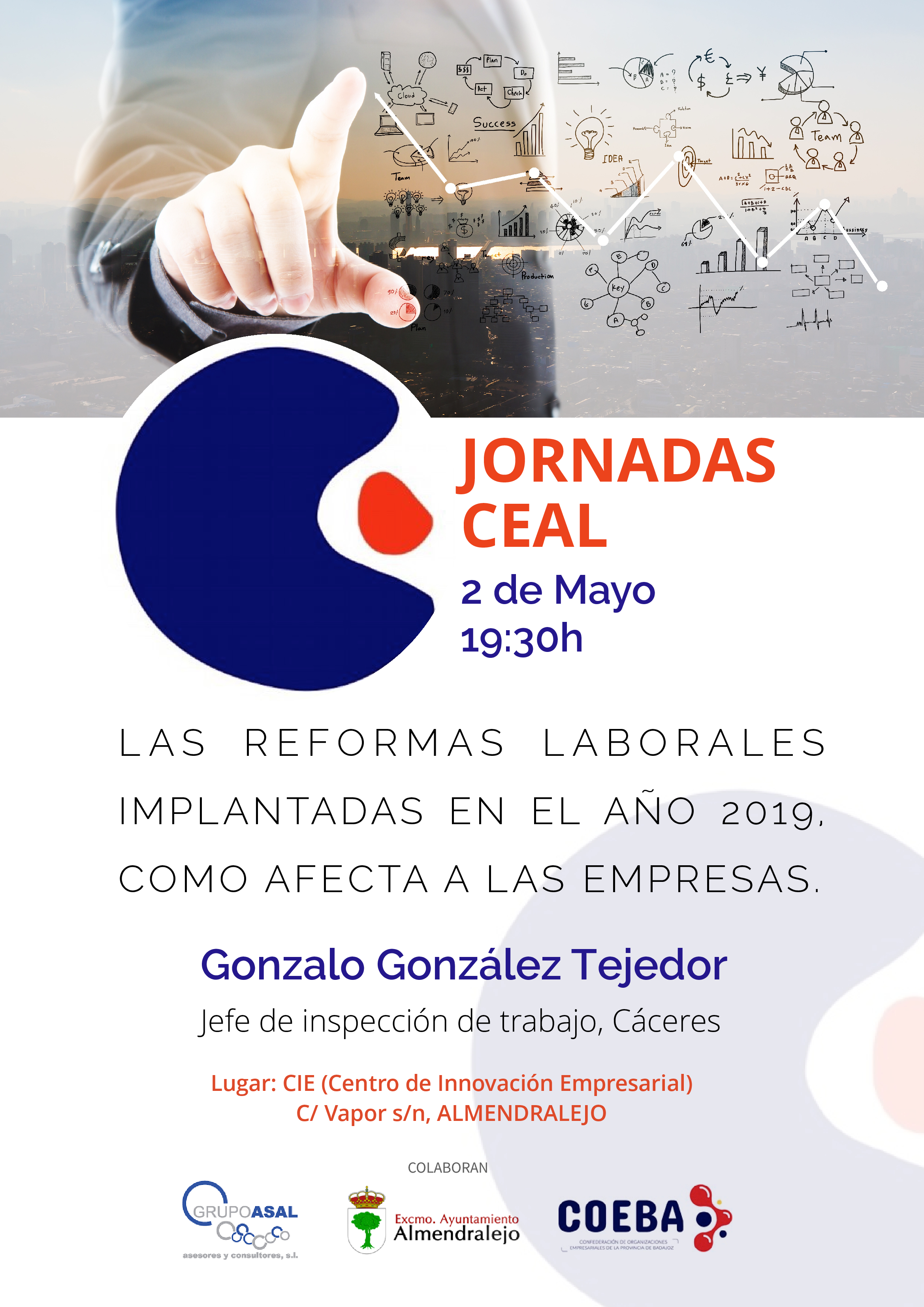 La Coordinadora Empresarial de Almendralejo, realizará el próximo día 2 de Mayo , unas Jornadas para informar a los Empresarios de como afecta a las empresas , para ello cuentan con el Inspector de trabajo D. Gonzalo González Tejedor, que les informará de todo lo referente a esta modificación. Tendrá lugar a las 19:30 horas en el Centro de Innovación Empresarial.